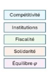 Le plan du site affiche l'ensemble des propositions, classées en 5 catégories, et présentées de manière systémique, afin de montrer comment toutes, impactent d'une manière ou d'une autre, notre objectif principal, sans lequel rien n'est possible, à savoir améliorer la compétitivité économique de notre pays